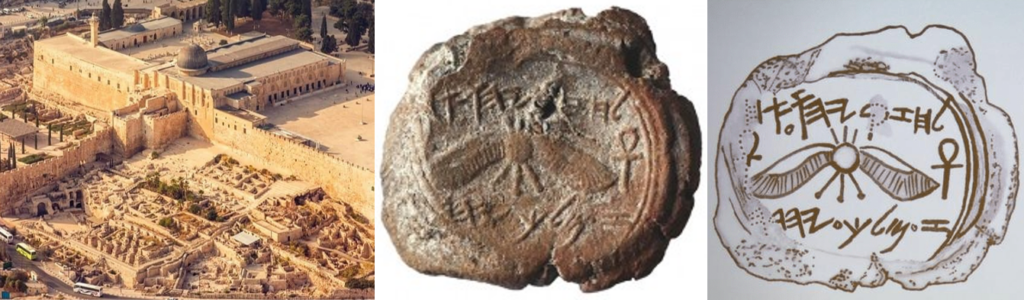 Ce symbole figure précisément sur la bulla[1] d’Ézéchias, découverte en 2015 lors des fouilles dirigées par Eilat Mazar [2] dans la zone de l’Ophel[3]. Cette empreinte en argile — la première attribuée avec certitude à un roi de Juda trouvée en fouilles stratifiées [4] — porte un soleil ailé [5].