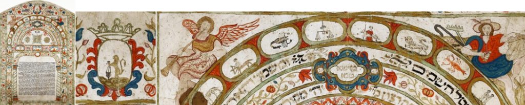 [6] La présence d’un zodiaque (מַזָּלוֹת, mazalot) complet symbolise le cycle du temps, la régularité cosmique et la bénédiction divine sur la vie conjugale. Il évoque aussi la providence et la chance (מַזָּל טוֹב– mazal tov), souhaitée aux époux.